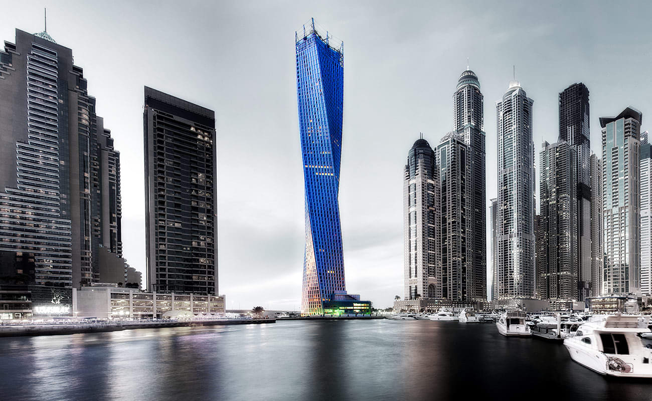 Once again adding another feather to its hat of architectural wonders, Dubai’s Marina district stands as the largest man-made marina of the world. Master-developed by Emaar, the artificial canal city is home to a 7km long walkway and serves as the shelter for a number of yachts. Keeping up with Dubai’s spirit of entertainment, this community has a number of cafes, restaurants and bars and is also home to the famous Cayan Tower and the world’s tallest residential tower, Princess Tower.(source: www.arabianbusiness.com/select-launches-new-122m-dubai-marina-residential-project-647552.html)